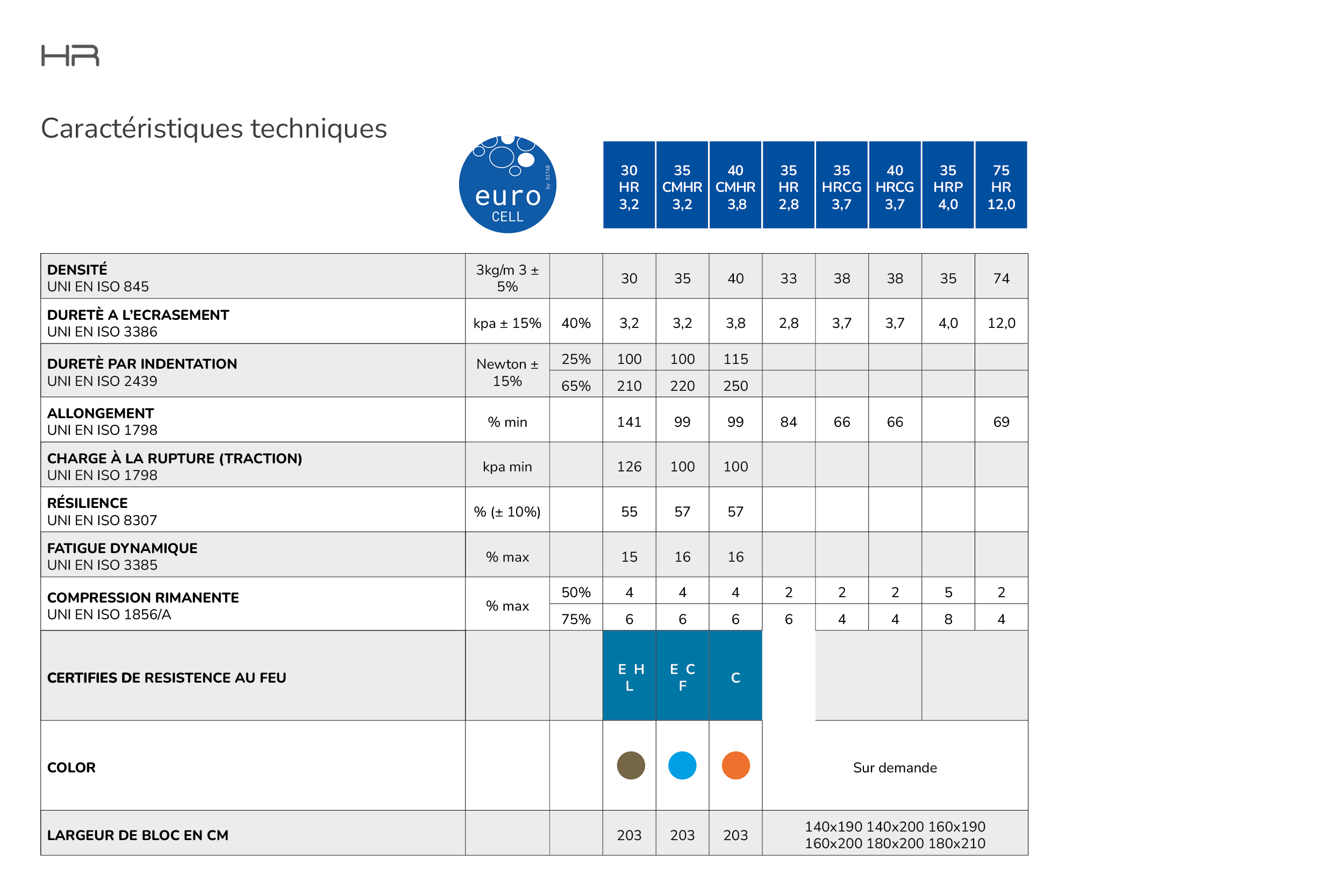 Les données indiquées dans les «caractéristiques techniques / fiches techniques» se rapportent à des échantillons obtenus dans le plan perpendiculaire au sens de croissance du produit pendant la phase de réaction et non à proximité des surfaces externes. Les matériaux à haute résilience tels que HR et AT doivent être préalablement soumis à des traitements mécaniques pour générer la rupture cellulaire (manglage). Il est conseillé d’obtenir les détails souhaités de sorte que lors de la phase d’utilisation finale, ils soient sollicités dans une direction parallèle à la direction de croissance. Les données et informations contenues dans ce document et dans les différentes fiches techniques sont basées sur les connaissances disponibles à la date d’édition ou les révisions ultérieures, SITAB PE se réserve le droit de modifier les données déclarées ici à tout moment.